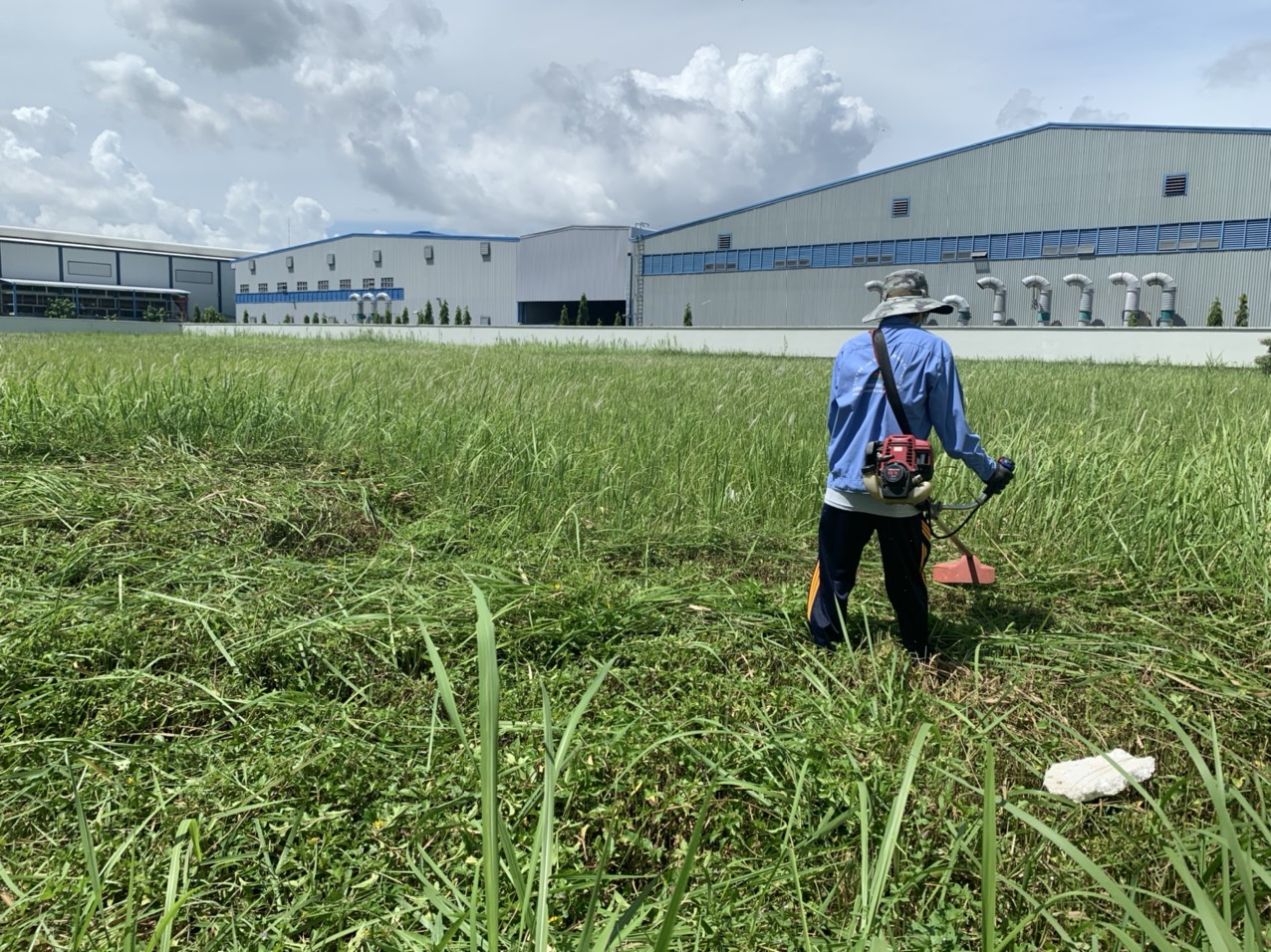 Cắt cỏ khu công nghiệp giúp đảm bảo cảnh quan luôn đạt chuẩn bên cạnh đó là đảm bảo an toàn lao động