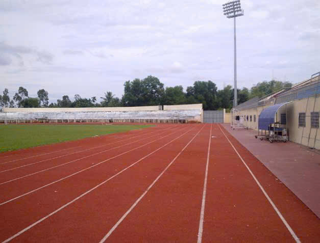 Thi công thảm nhựa tổng hợp đường chạy điền kinh hệ SP dày 13mm bằng máy chuyên dụng SMG - Đức, hệ nhựa tổng hợp chịu được ngập nước, phù hợp điều kiện thời tiết miền Bắc :