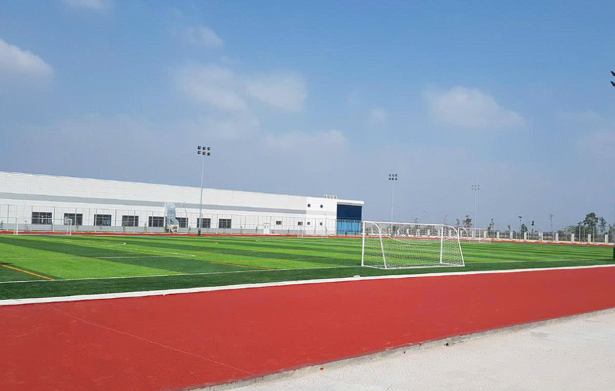 - Lớp mặt EPDM dày 3mm, dùng hạt cao su EPDM màu trộn với keo PU phủ bằng máy chuyên dụng SMG - Đức. Định mức: 1,2kg keo PU Binder + 1,2kg hạt cao su màu đỏ EPDM/1m2