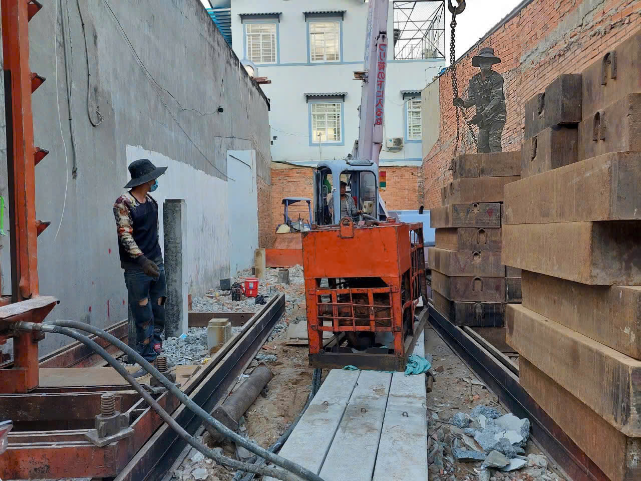Thi công đóng cọc.